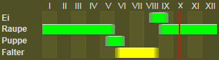 Lebenszyklus: Die Jungraupe überwintert. In der Schweiz partielle 2. Generation nachgewiesen.