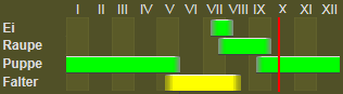Die Raupe - Sp. IV, T 38 - lebt an Vaccinium myrtillus und uliginosum von August bis April. Man erlangt sie am leichtesten im Herbst durch Schöpfen; die Raupen überwintern fast erwachsen und liefern die Falter von Mitte April an, im warmen Zimmer auch schon früher. E. Sp. I, 329 - Roug. 159. 335 - Favre 227 - Lamp. 210.
