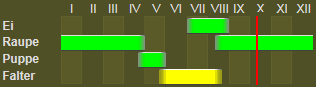 Biologie: Raupen an welken Blättern zahlreicher Pflanzen. Das Raupenpflanzenspektrum ist unklar