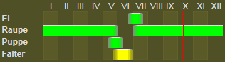 Lebenszyklus: In Europa einbrütig. Jungraupen an Krautpflanzen. Die Jungraupe überwintert. Altraupen an Laubbäumen und Sträuchern. Verpuppung in lockerem Gespinst am Boden.