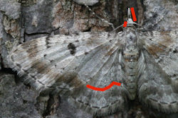 Äusserlich ist E. analoga von E. abietaria kaum zu unterscheiden. Palpenlänge bei analoga 2.5 x Augendurchmesser.