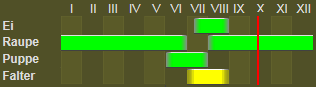 Lebenszyklus: Einbrütig. Die Raupe überwintert.