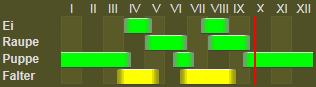 Höhenverbreitung: 600 - 2000 mLebenszyklus: Bivoltin.Habitat: Mesophile Art gehölzreicher Habitate: Buschige Hänge, Waldränder, Heiden, Hecken, Gärten.Biologie: Falter nachtaktiv, gern am Licht. Raupe monophag an Berberis.