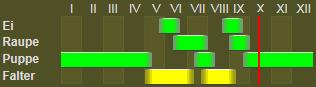 1026. capitata H. S. (= balsaminata Frr.) - Sp. III, T70 - B. R. T 43. Der seltene Falter fliegt in schattigen, feuchten Waldschluchten im April-Mai und Juli-August. Aadorf (Z.-R.), Fällanden (Rühl), Zürich (Nägeli, V.), Siselen, Büren (Ratz.), Bern (Jäggi), Weissenburgschlucht (Hug.). Bechburg (R.-St.), Biel, Lamboing (Roh.), Dombresson (Roug.), St. Blaise (V.), Saleve, Malagnou (Blach.), Airolo (1179 m, Stierl.), Ilanz (Caveng), Landquart, Lostallo (Thom.), Chiasso (Mayer). Eier und Raupen sind von Juni an auf der Unterseite der Blätter von Impatiens noli tangere zu finden; sie können aber auch mit Epilobium erzogen werden. Die Eier werden an die Blattränder abgelegt; die Raupen sitzen auf der Mittelrippe. Die Aufzucht geschieht am besten in Gläsern, in denen sich auch die Futterpflanze einige Tage frisch erhält. Die Raupen - Sp. IV, T 46 - wachsen ziemlich schnell, sind in 4 Wochen erwachsen und verpuppen sich in einem leichten Gespinst zwischen Moos. Einzelne Falter erscheinen nach 3 Wochen, die Mehrzahl aber erst im nächsten Frühsommer. E. Sp. II, 65 - Roug. 239 - B. R. 359 - Gub. Ent. Zeitschr. IV, 121.