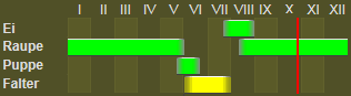 Bodensee, Hagewil (M.-R.), am Hüttwilersee häufig (Wehrli), Dübendorf (Corti), Uto, Dietikon, Glattbrugg, Greifensee (Nägeli), Zürich, Weiningen (V.), Siselen, Büren (Ratz.), Liestal (Seiler), Biel, Ipsach (Rob.), Bern (V.), Weissenburg (Hug.), Kandersteg (v. J.), Aigle (Lah.), Martigny (W.), Landquart (Thom.). Die Raupe Sp. IV, T 40 lebt von Herbst bis Frühjahr an Artemisia campestris und vulgaris, Centaurea jacea u. s. w. E. Sp. II, 24 Favre 241 Frio. III, 52 B. R. 322.