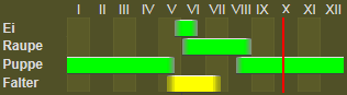 Lebenszyklus: Einbrütig. In Südeuropa partielle 2. Generation im Spätsommer.