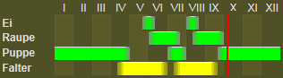 Biologie: Raupe polyphag an krautigen Pflanzen, bevorzugt auf Galium.