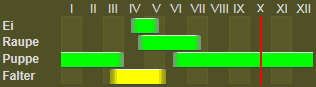 Biologie: Bei warmer Witterung sind die Imagines ab spätem Nachmittag recht lebhaft. Als Tagesversteck bevorzugen sie die Fichtenzweige in mittlerer Baumhöhe. Eiablage an die vorjährigen Nadeln, direkt unterhalb des sich neu bildenden Triebes. Raupe an jungen Fichtennadeln frischer Endtriebe. Zur Verpuppung lassen sich die Raupen zu Boden fallen.