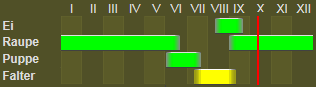 Die Raupe Sp. IV, Nachtr. T VI lebt an Sarothamnus scoparius und Genista sagittalis von Herbst bis im MaiJuni, angeblich auch an Cytisus und Calluna. E. Sp. n, 31 Roug. 206 Favre 274 Gub. Ent. Zeitschr. III, 228 Frio. III, 126 Lamp. 225, T 67 B. R. 329.
