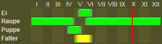 Lebenszyklus: Die Art ist vorwiegend einbrütig. Ob Sommertiere einer partiellen 2. Generation angehören, oder ob es späte Tiere der ersten Generation sind, ist noch nicht geklärt.