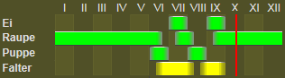 Lebenszyklus: Einbrütige Art. Partielle 2. Generation im Süden.