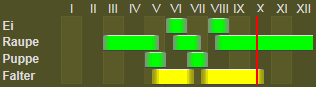 Lebenszyklus: Die Art ist ein- bis mehrbrütig je nach Lage.