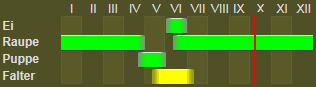 Lebenszyklus: Einbrütige Art. Im Süden partielle 2. Generation im August.