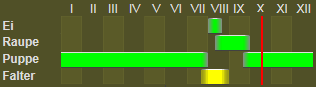 Lebenszyklus: Einbrütig. Die Puppe überwintert in der Erde, oft zweimal.