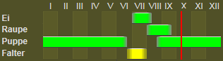 Lebenszyklus: Ein- bis zweibrütig. Die Puppe überwintert.