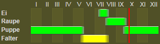 Lebenszyklus: Die Art ist einbrütig. Im Süden partielle 2. Generation.