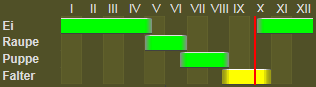 Blätter und Blüten über. In günstigen Jahren sind sie anfangs Mai erwachsen und verwandeln sich unter Moos in lockerem, mit Erdklümpchen durchsetztem Gespinst zur Puppe. Die Falter erscheinen von anfangs September bis Mitte Oktober. E. Sp. II, 35 - Favre 277 - Roug. 209 - Frio. III, 257 - B. R. 333 - Soc. Ent. I, Nr. 1.