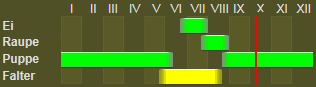 Nachweismethoden: LF im Juli. An Stellen mit Anflug einige Wochen später die Raupen nachts suchen.