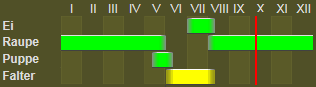 Lebenszyklus: Einbrütige Art. Im Süden parteille 2. Generation.