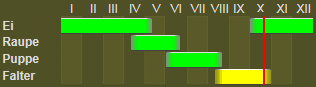 517. aprilina L. - Sp. III, T 39 - B. R. T 32 - Stz. III, T 32. Der Falter ist in den tiefern Landesteilen überall vorhanden und nicht selten; Flugzeit von Juli bis Oktober. Bei Chur fliegt er in stark berussten Stücken (Kill., Cafl.), ebenso bei Ilanz (Caveng). Die Raupe - Sp. IV, T 26 - lebt an Eichen, Buchen, Eschen, Obstbäumen u. s. w. im Mai-Juni. Ich fand sie im Juni 1907 in der Nähe von Basel an Kirschbäumen sehr zahlreich über Tag in Stammritzen geborgen. Die Verpuppung erfolgte Ende des Monates und die Falter schlüpften zwischen dem 10. und 20. IX. E. Sp. I, 205 - Favre 161 - Roug. 107 - Lamp. 164 - B. R. 211, T 33 - Stz. III, 132.